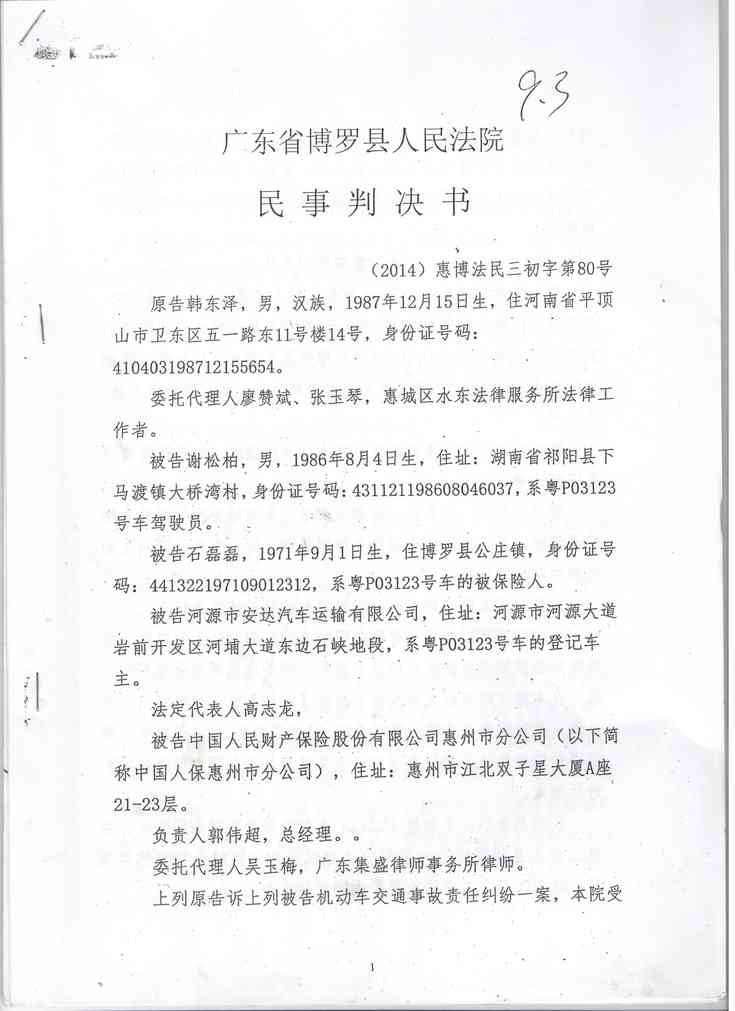 广东省博罗县人民法院民事判决书